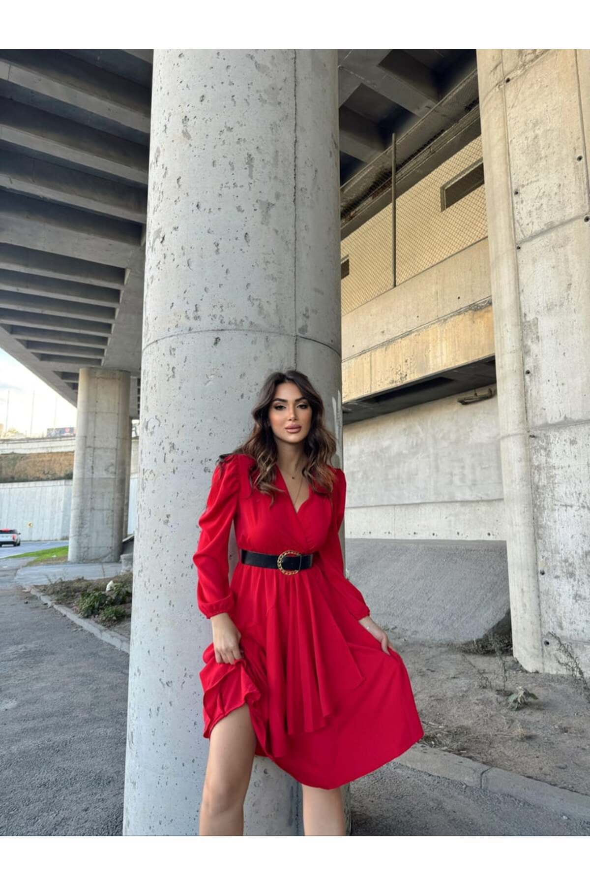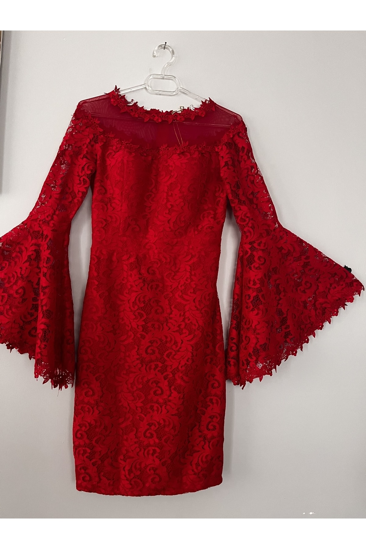 Kadın Kırmızı Dantelli Uzun Kol Elbise Kadın Kırmızı Dantelli Uzun Kol Elbise 20Y106K10017 42