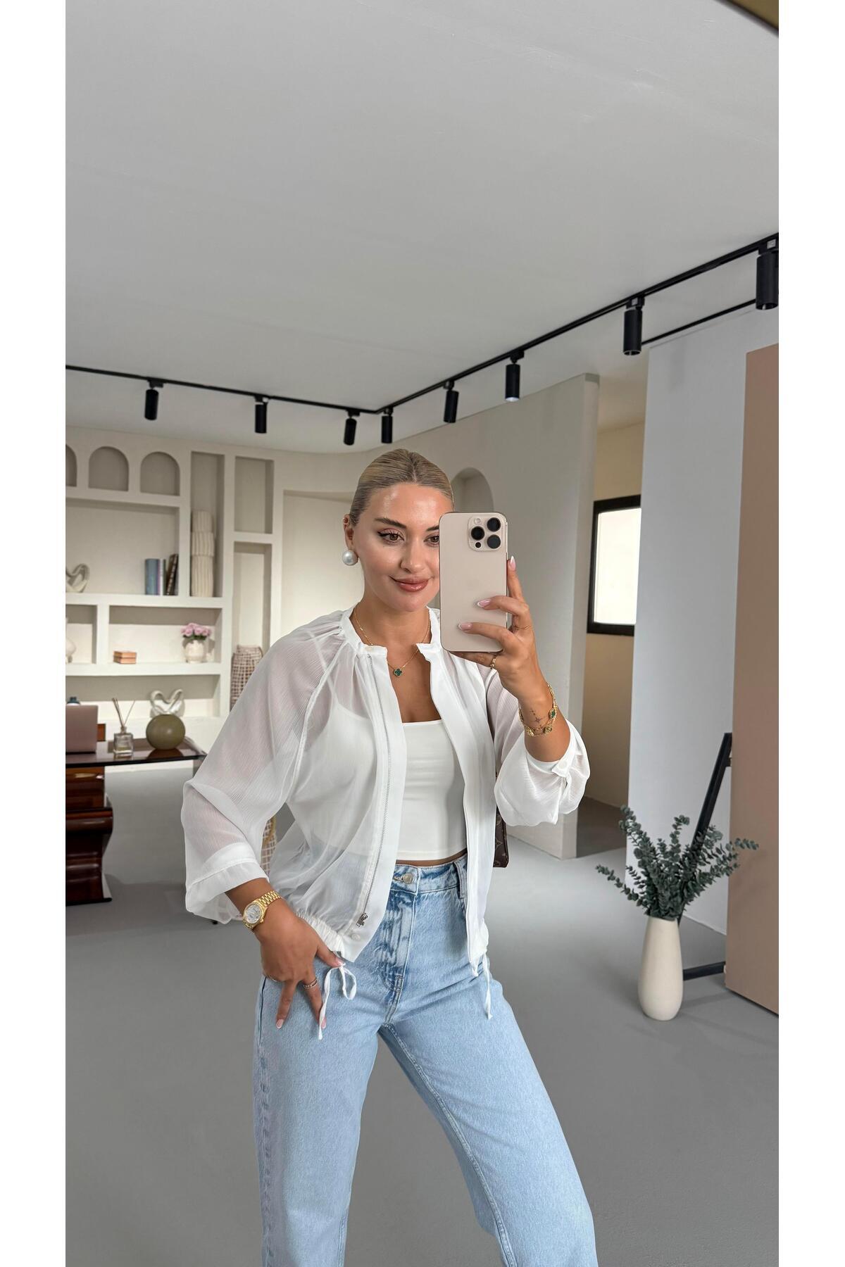 Beyaz Kısa Kot Ceket Beyaz Kısa Kot Ceket K0800015 34