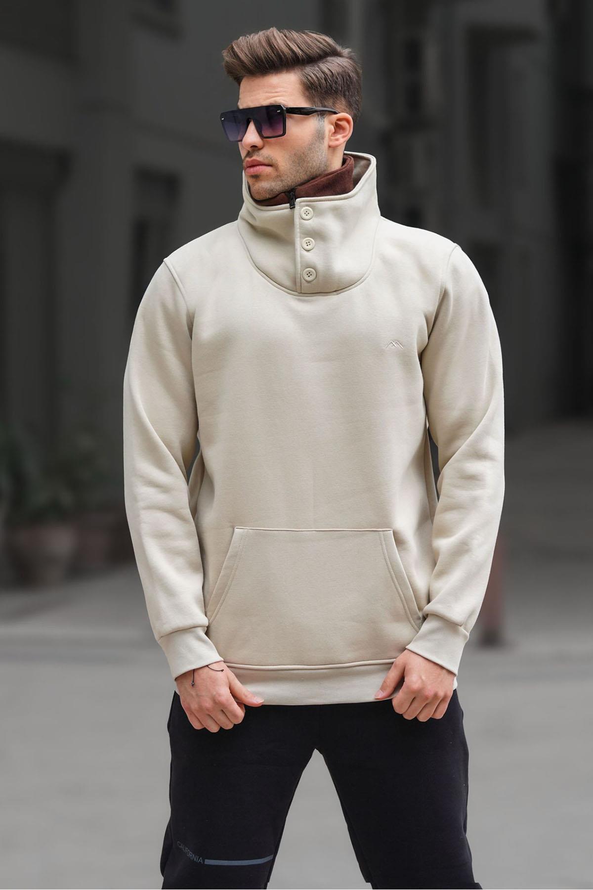 Triko Yaka Düğmeli Bej Sweatshirt 4411 Triko Yaka Düğmeli Bej Sweatshirt 4411 XL