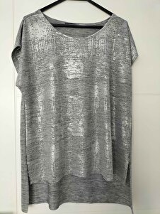 Düşük Omuz Gümüş Sim Baskılı Tshirt-gri Düşük Omuz Gümüş Sim Baskılı Tshirt-gri PRA-1797401-036692 48