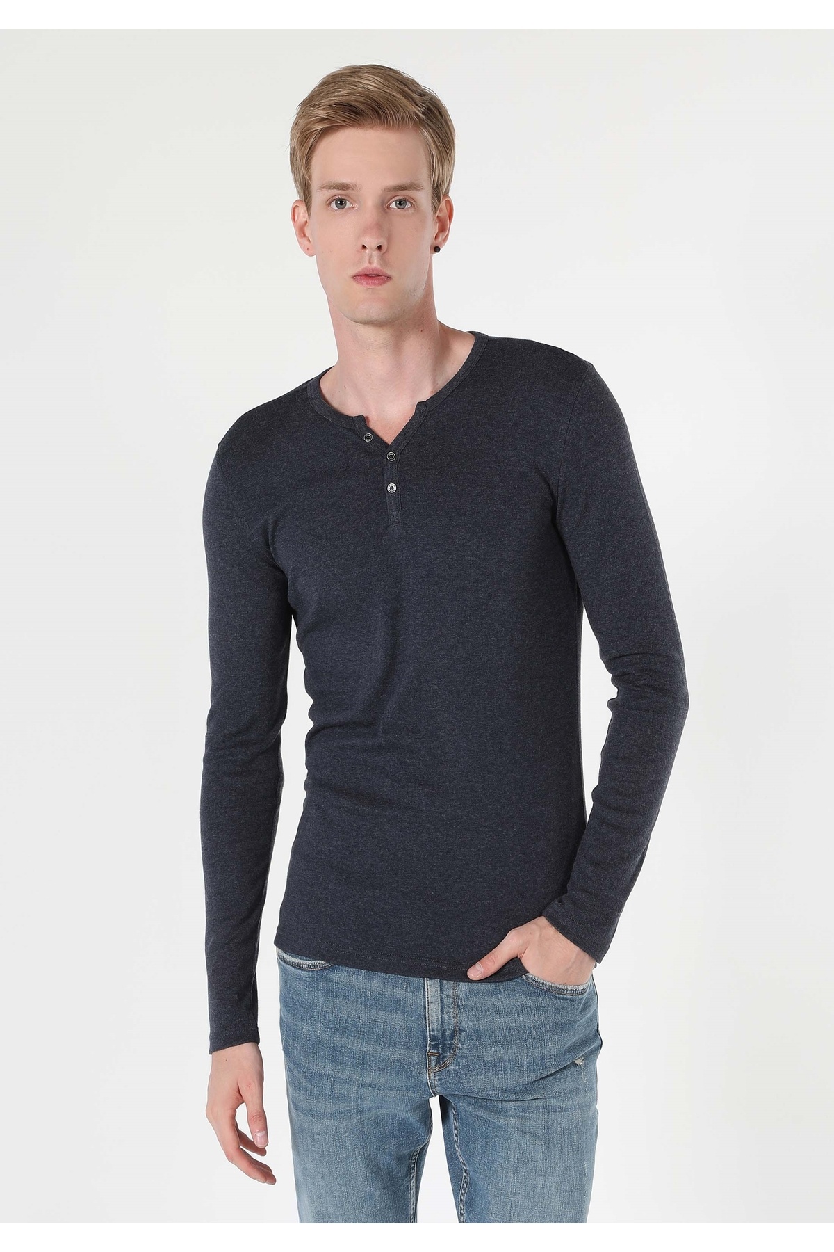 Slim Fit Placket Neck Düz Erkek Siyah Uzun Kol Tişört Slim Fit Placket Neck Düz Erkek Siyah Uzun Kol Tişört CL1022847 M