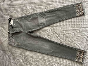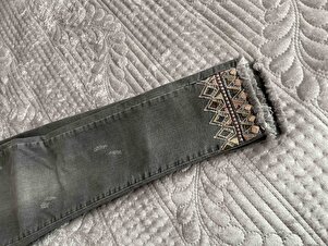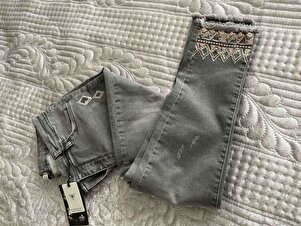 Paçası Ve Yanları Pullu Nakışlı Likralı Gri Kot Pantolon Paçası Ve Yanları Pullu Nakışlı Likralı Gri Kot Pantolon PS020928 33