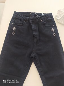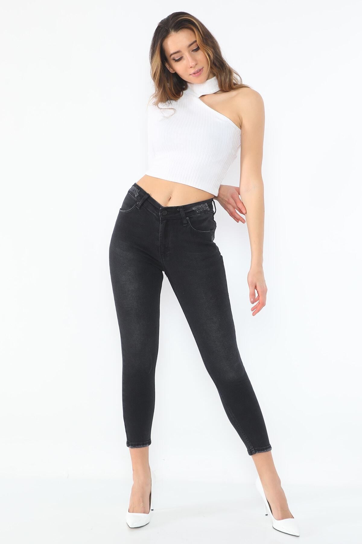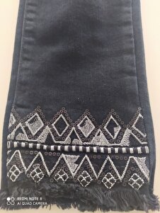 Paçası Ve Yanları Pullu Nakışlı Likralı Antrasit Kot Pantolon Paçası Ve Yanları Pullu Nakışlı Likralı Antrasit Kot Pantolon PS020928 33