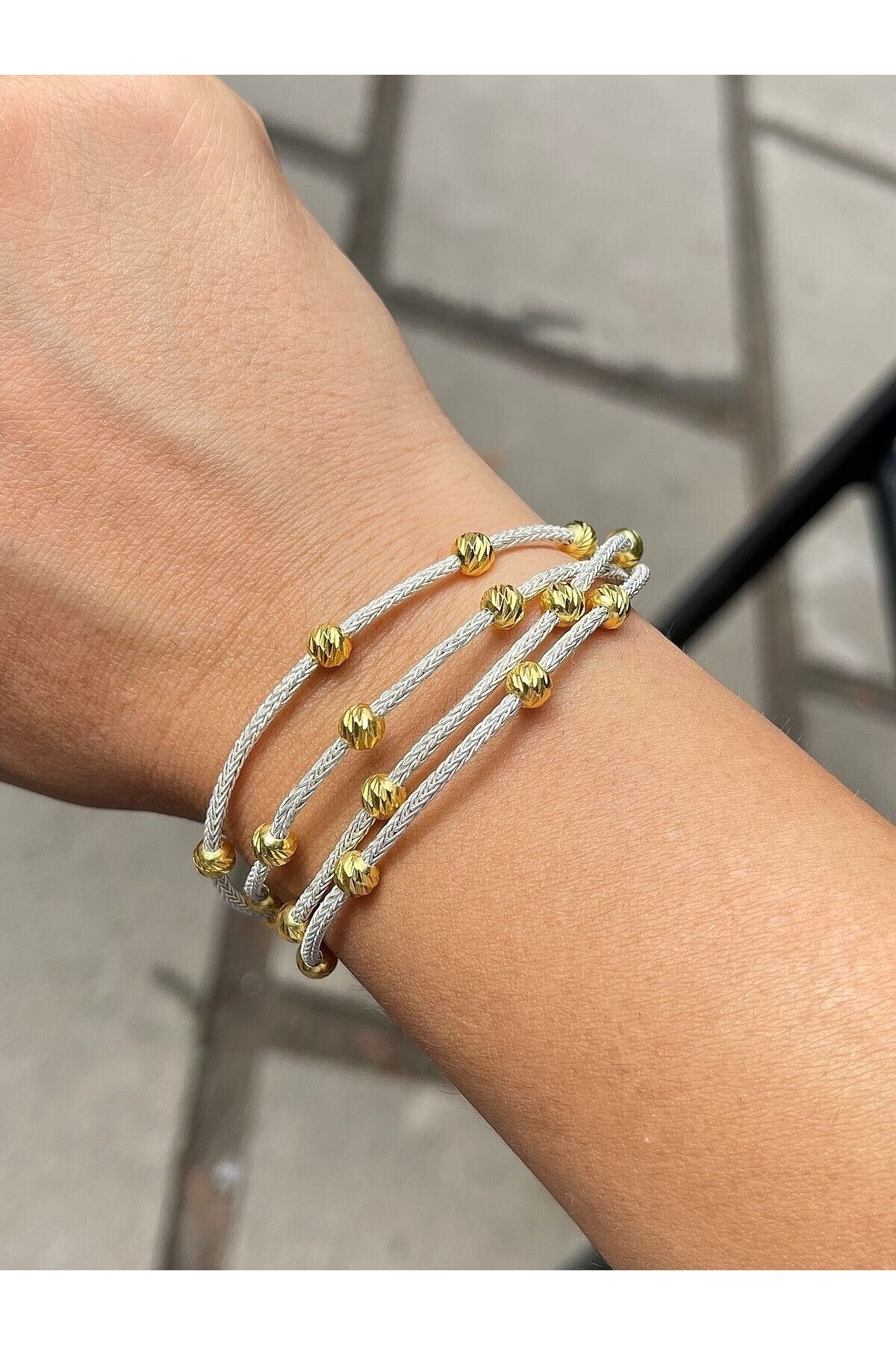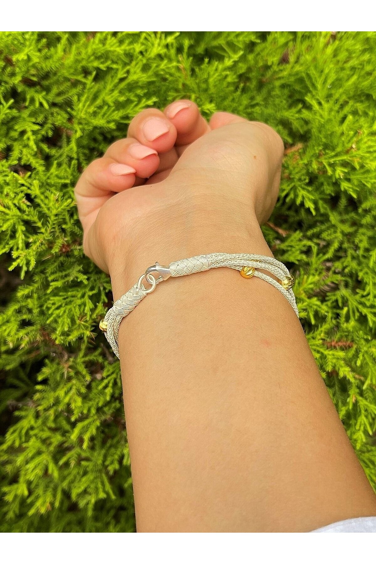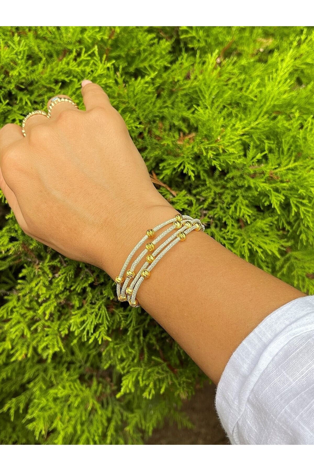 Gold Dorika Boncuklu Gümüş Kazaziye Dört Zincirli Bileklik Gold Dorika Boncuklu Gümüş Kazaziye Dört Zincirli Bileklik BIL080 21 cm