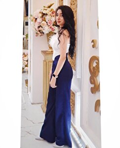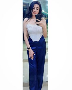 Kadın Lacivert Geniş Paça Saten Pantolon Kadın Lacivert Geniş Paça Saten Pantolon 132 L