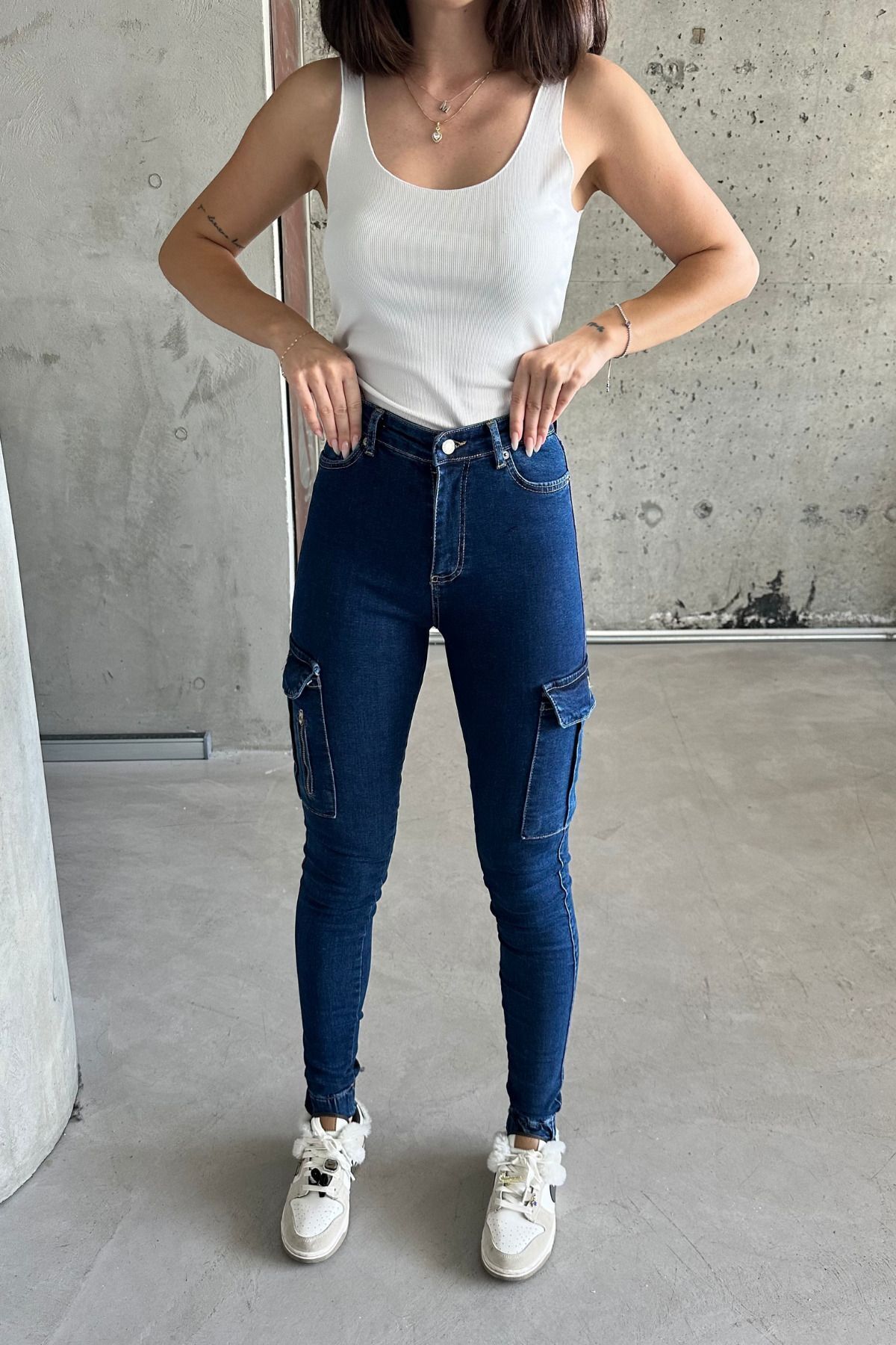 Oprah Simsiyah Likralı Kargo Cep Jeans Pantolon Oprah Simsiyah Likralı Kargo Cep Jeans Pantolon 34