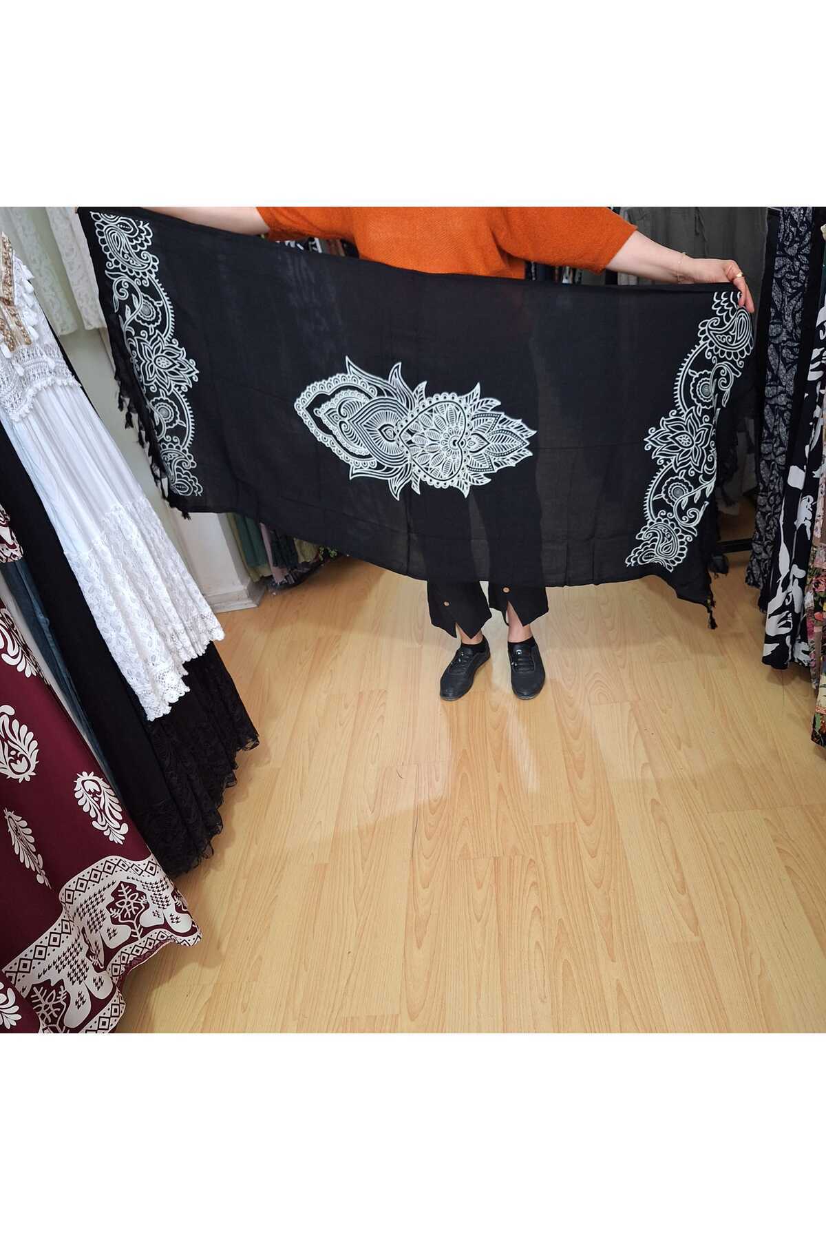 Kadın Bej Desenli Püsküllü Şal Kadın Bej Desenli Püsküllü Şal GEZ24 تک سایز