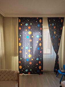 Uzay Desenli Çocuk Odası Fon Perde Uzay Desenli Çocuk Odası Fon Perde 8906 70 x 260