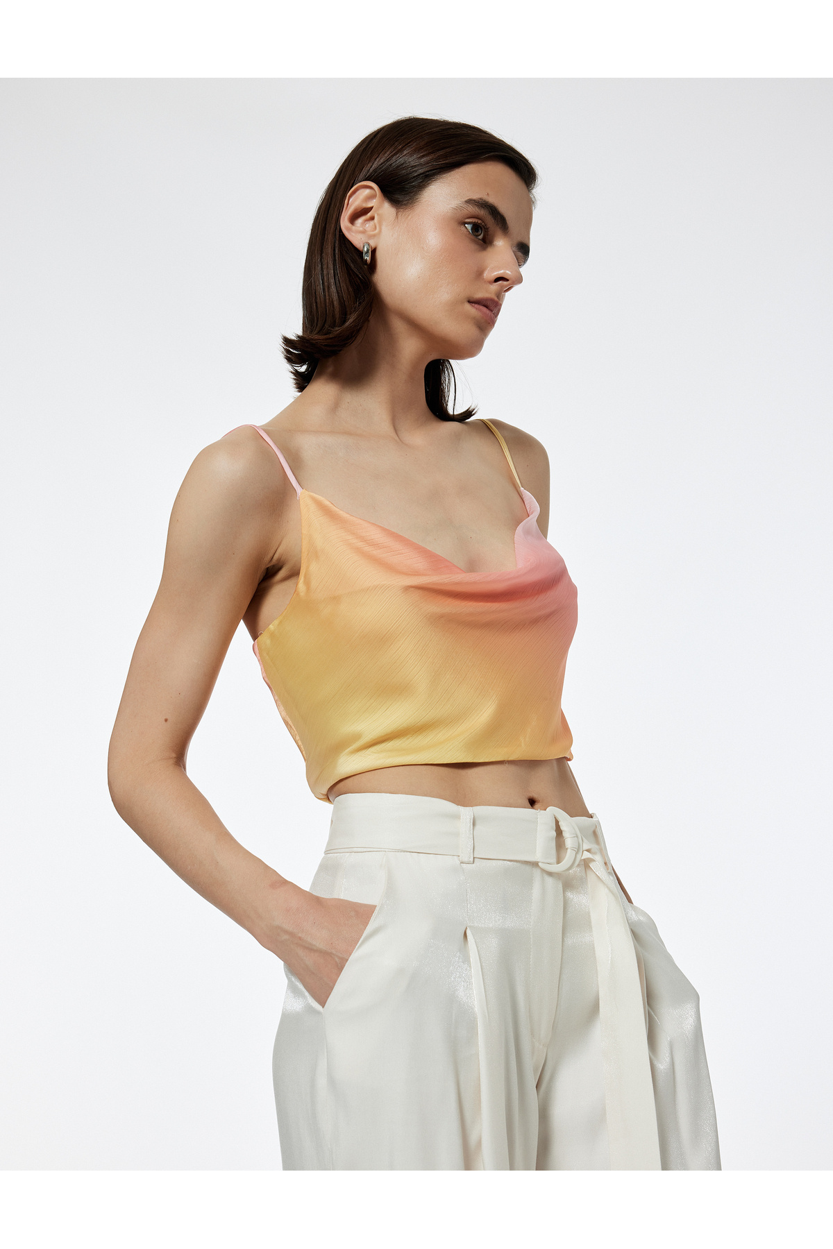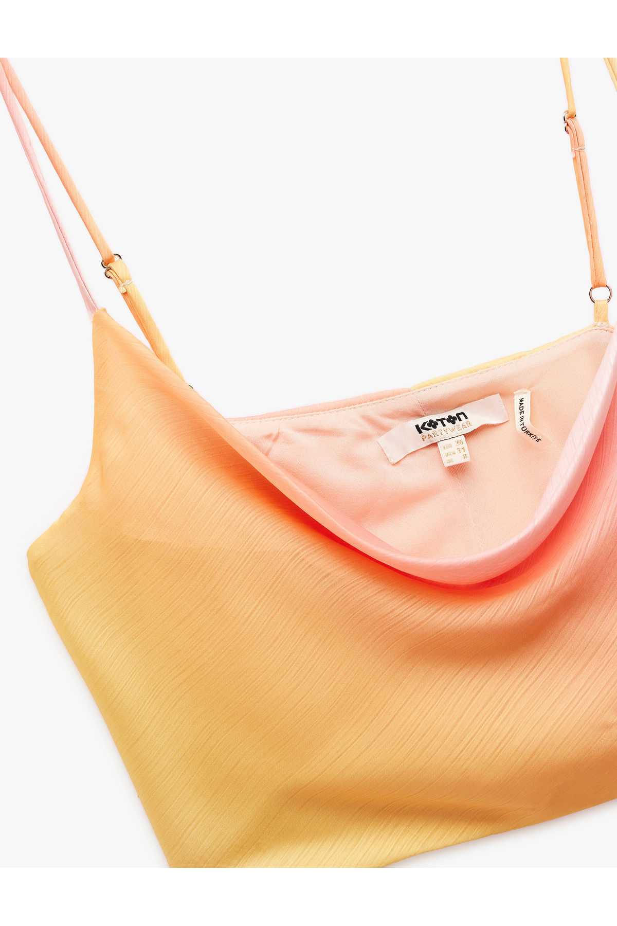 Saten Crop Abiye Bluz Askılı Degaje Yaka Renk Geçişli Saten Crop Abiye Bluz Askılı Degaje Yaka Renk Geçişli 2SAK60042FW 42