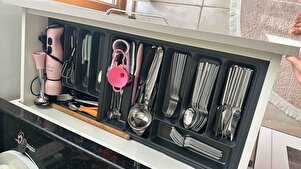 30x36 Cm. 5 Bölmeli Çekmece Içi Antrasit Kaşıklık Ücretsiz Kesim (26,5X32,5 CM'E KADAR KESİLEBİLİR) 30x36 Cm. 5 Bölmeli Çekmece Içi Antrasit Kaşıklık Ücretsiz Kesim (26,5X32,5 CM'E KADAR KESİLEBİLİR) TINY30 تک سایز