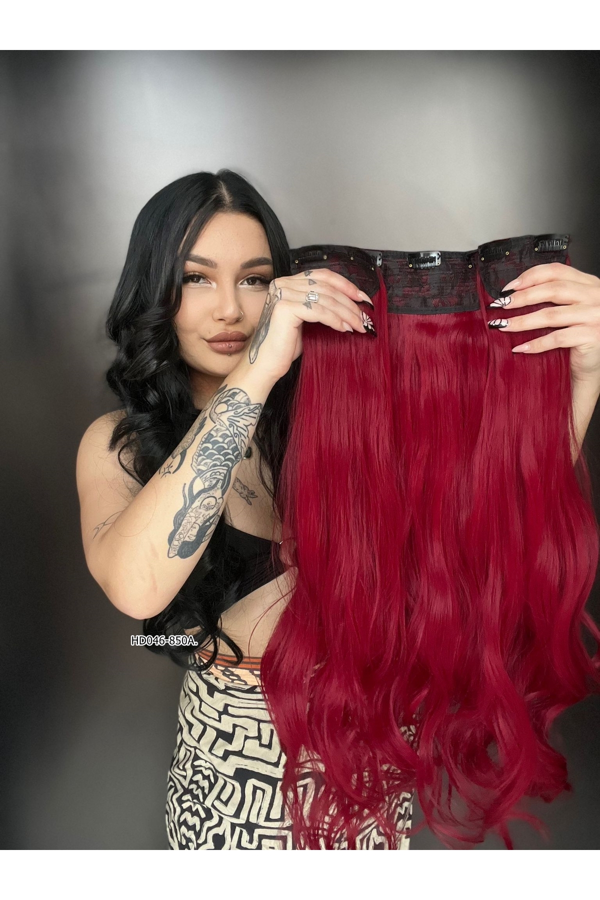 Şarap Kızılı Yarım Ay Çıt Çıt Postiş - Isıya Dayanıklı Saç Şarap Kızılı Yarım Ay Çıt Çıt Postiş - Isıya Dayanıklı Saç 07628 تک سایز