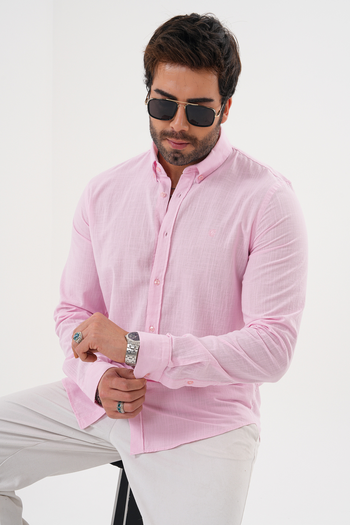 Erkek Pembe Kalın Dik Çizgili Uzun Kollu Yakası Düğmeli Slim Fit Gömlek Erkek Pembe Kalın Dik Çizgili Uzun Kollu Yakası Düğmeli Slim Fit Gömlek VAVN21Y-4300589-01 3XL