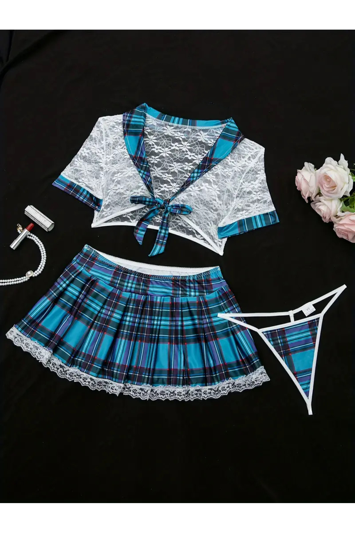 Kadın Beyaz Ekose Etekli Fantezi Kostüm Seksi Elbise Liseli Kostümü Kadın Beyaz Ekose Etekli Fantezi Kostüm Seksi Elbise Liseli Kostümü HSBLTYS1017 XL