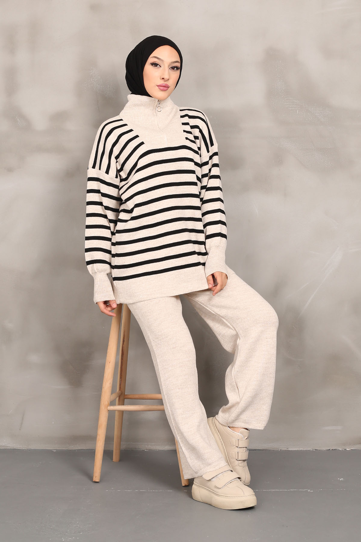 İki Renkli Triko Takım Kahverengi İki Renkli Triko Takım Kahverengi 08887 تک سایز