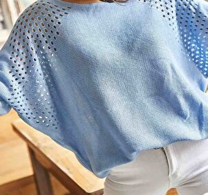 Kadın Bebe Mavi Ajurlu Yarasa Oversize Triko Kazak KZK-19000524 Kadın Bebe Mavi Ajurlu Yarasa Oversize Triko Kazak KZK-19000524 Standart