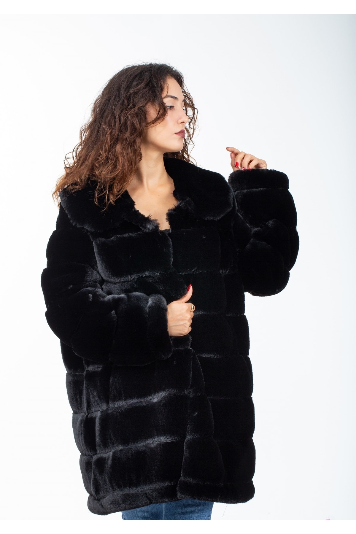 Kadın Kapüşonlu Siyah Kürk Kaban Kadın Kapüşonlu Siyah Kürk Kaban KZSTRN2022 46-48
