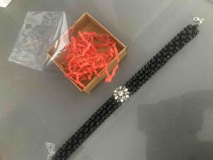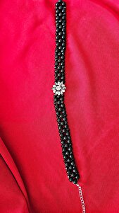Kristal Çiçekli Siyah Tasma Inci Kolye Kristal Çiçekli Siyah Tasma Inci Kolye 6220100159 تک سایز