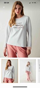 Gri Slogan Baskılı Termal Uzun Kollu Tişört Pijama Üstü Gri Slogan Baskılı Termal Uzun Kollu Tişört Pijama Üstü PNBIJI6W22SK-GR5 2XL