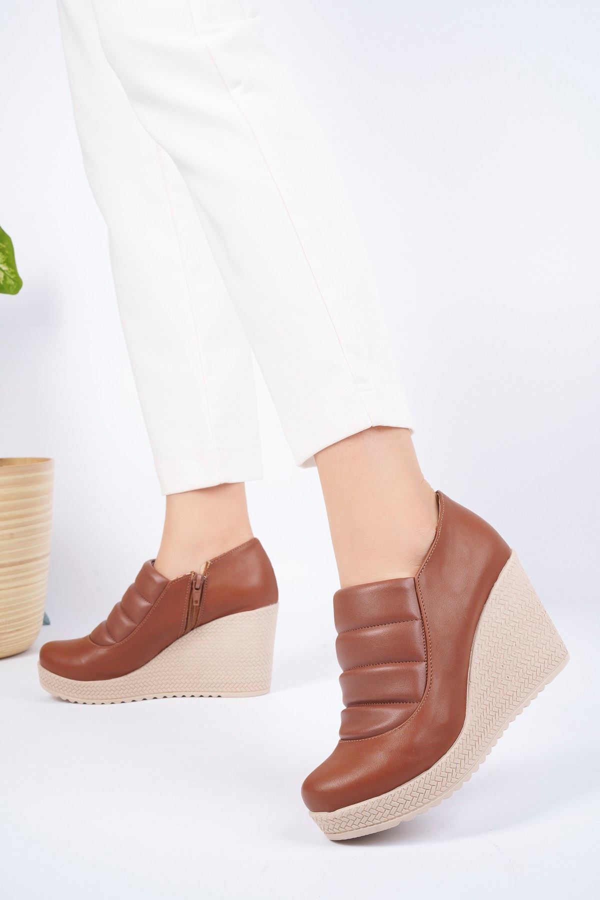 Dolgu Taban Yandan Fermuarlı Taba Cilt Kadın Ayakkabı Dolgu Taban Yandan Fermuarlı Taba Cilt Kadın Ayakkabı OSFA27GA 40