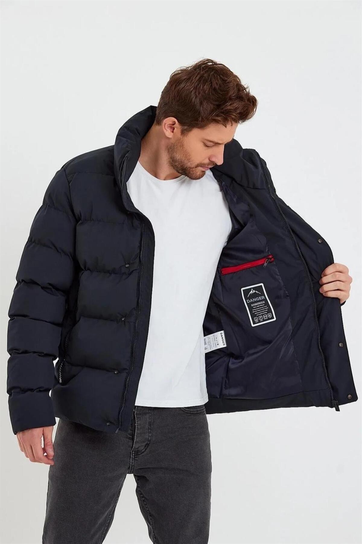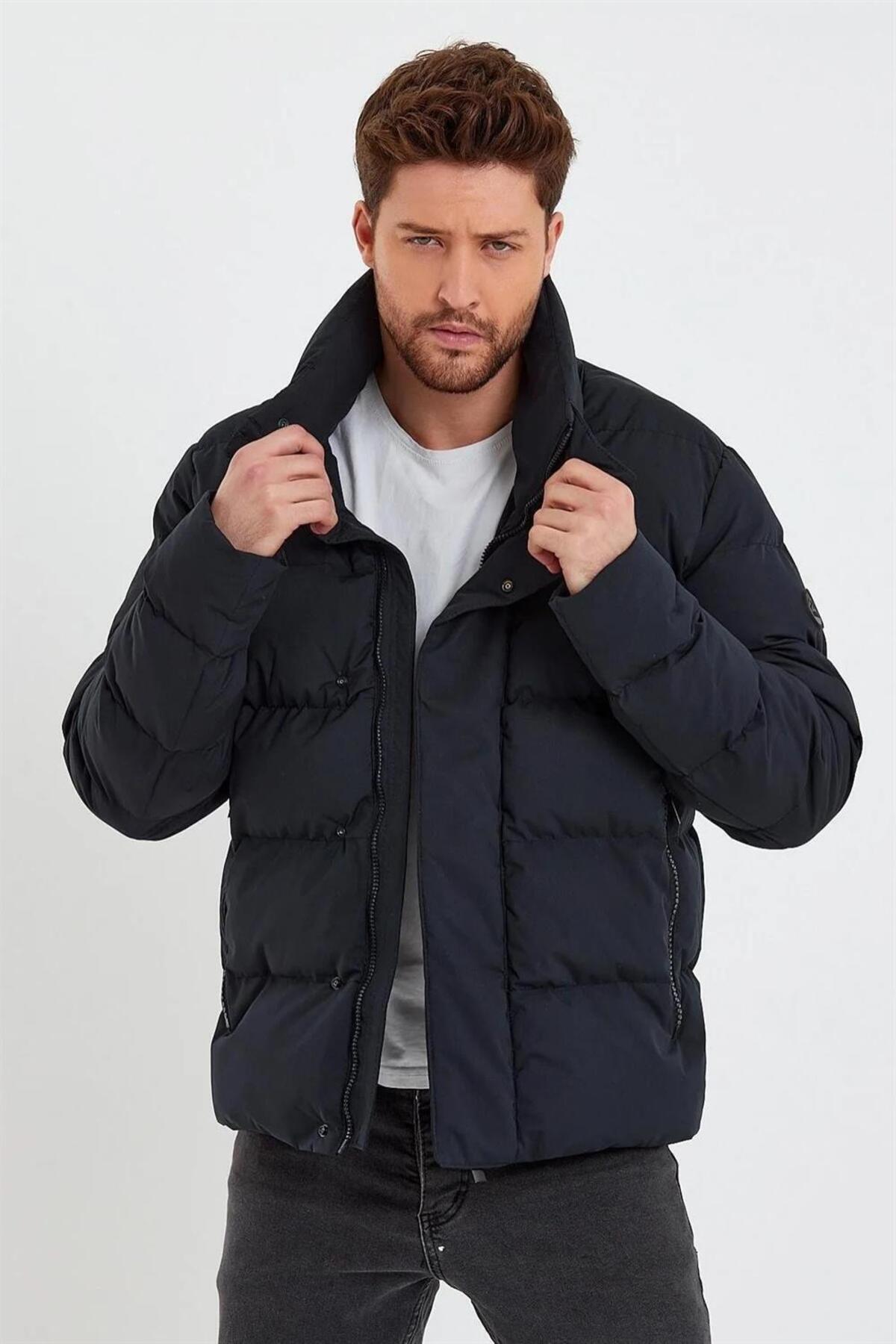 Erkek Dik Yaka Yağmur Ve Rüzgar Geçirmez Puffer Mont Lacivert Erkek Dik Yaka Yağmur Ve Rüzgar Geçirmez Puffer Mont Lacivert 775DNGR 2XL