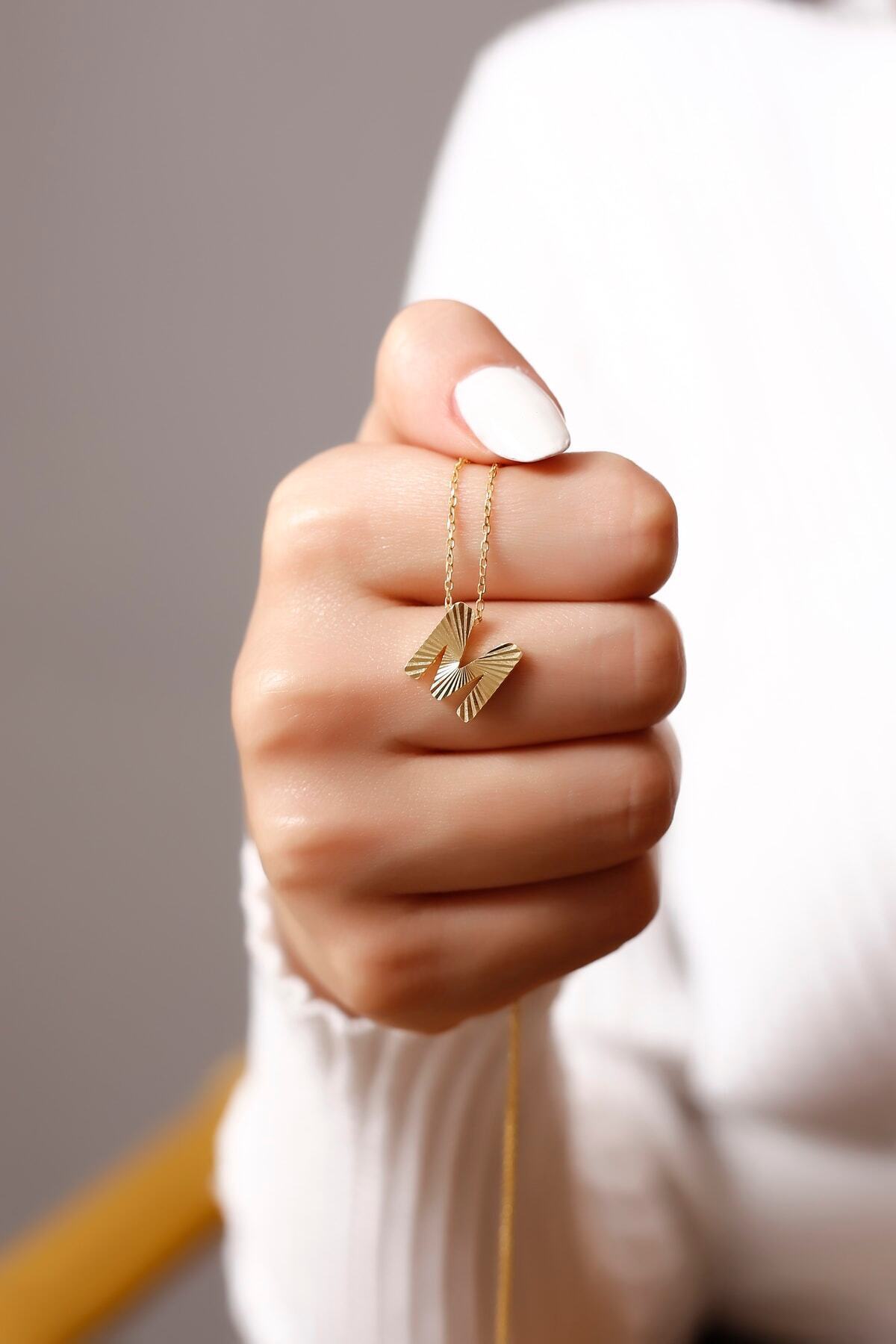 M Harfli Gümüş Kolye, Üstü Özel Kesimli M Harfli Gümüş Kolye, Üstü Özel Kesimli SARIASBAY377 45 cm