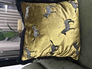 Hardal Zebra Islemeli Kadife Kirlent Kilfi Hardal Zebra Islemeli Kadife Kirlent Kilfi GEZBR18 تک سایز