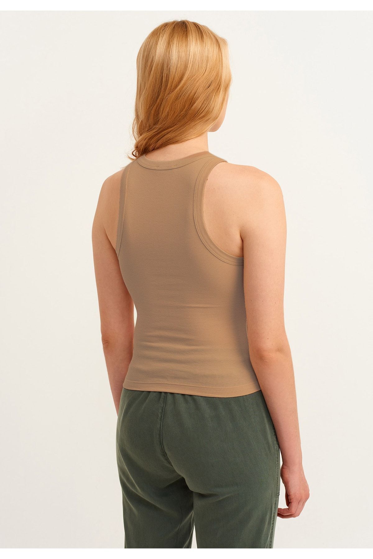 Kadın Vizon Fitilli T-shirt Halter Yaka Örme Atlet Kadın Vizon Fitilli T-shirt Halter Yaka Örme Atlet LAHALTER L