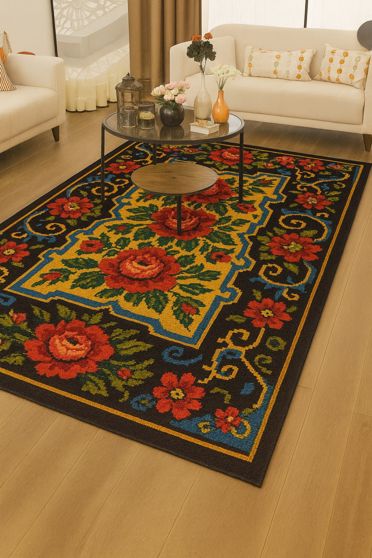 Mira 946 Karabağ Vintage Görünüm Siyah Saçaklı Dokuma Taban Halı Mira 946 Karabağ Vintage Görünüm Siyah Saçaklı Dokuma Taban Halı mira946 80 x 240