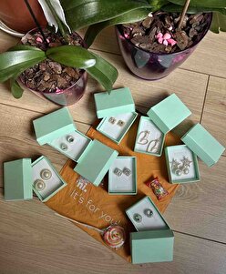 Kücük Kare Beyaz Taşlı Altın Renk Abiye Kadın Küpe Kücük Kare Beyaz Taşlı Altın Renk Abiye Kadın Küpe DA10196 تک سایز