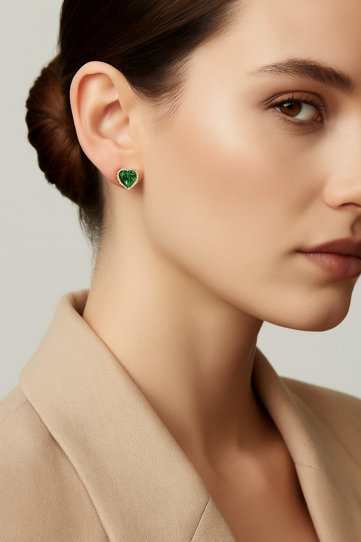 Kücük Oval Yeşil Taşlı Altın Renk Abiye Kadın Küpe Kücük Oval Yeşil Taşlı Altın Renk Abiye Kadın Küpe DA10198 تک سایز