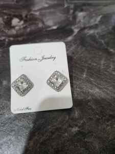 Kücük Kare Beyaz Taşlı Gümüş Renk Abiye Kadın Küpe Kücük Kare Beyaz Taşlı Gümüş Renk Abiye Kadın Küpe DA10196 تک سایز