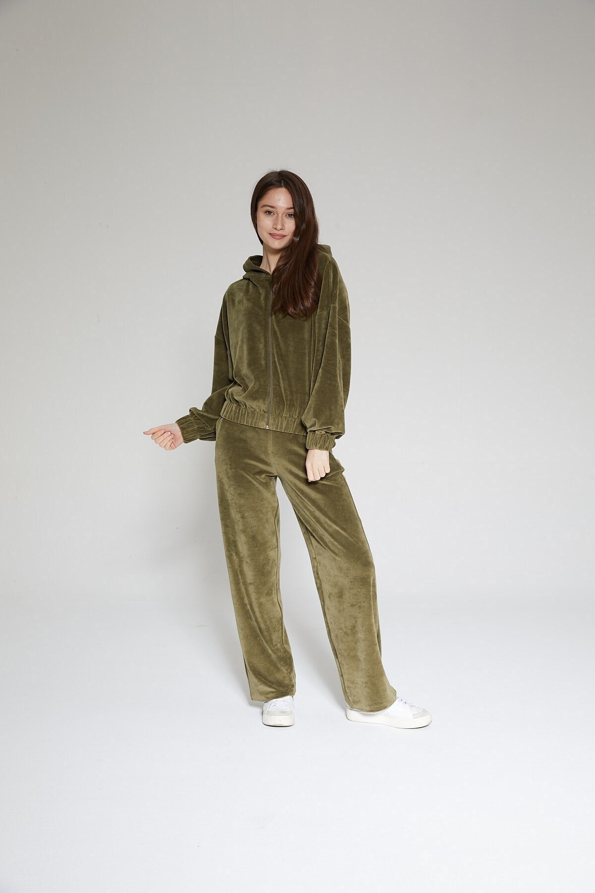Haki Kadın Kadife Wide Leg Eşofman Altı - Tare Haki Kadın Kadife Wide Leg Eşofman Altı - Tare CWESF005 L