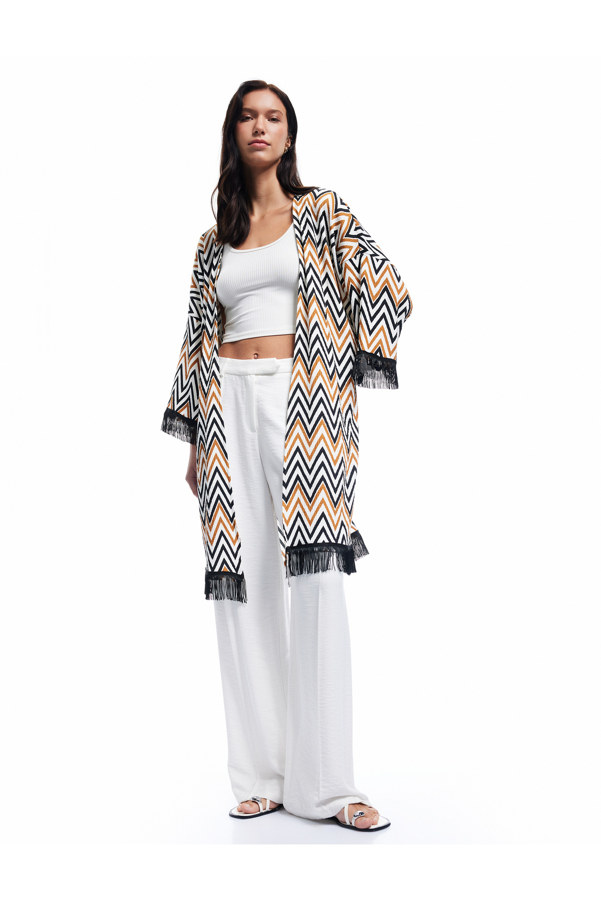 Cepli Uzun Moher Karışımlı Örgü Hırka Cepli Uzun Moher Karışımlı Örgü Hırka 3WAK90408HT XL