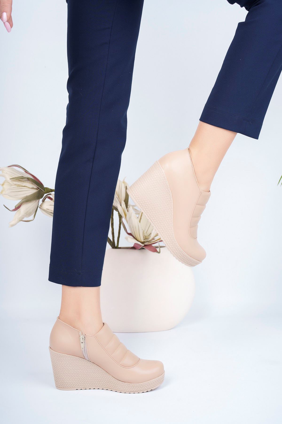 Dolgu Taban Yandan Fermuarlı Nut Cilt Kadın Ayakkabı Dolgu Taban Yandan Fermuarlı Nut Cilt Kadın Ayakkabı OSFA27 40