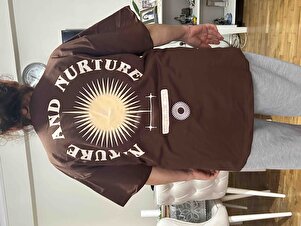 Kadın Kahverengi Bisiklet Yaka Baskılı Oversize Unisex T-Shirt ALC-X9577 Kadın Kahverengi Bisiklet Yaka Baskılı Oversize Unisex T-Shirt ALC-X9577 XL
