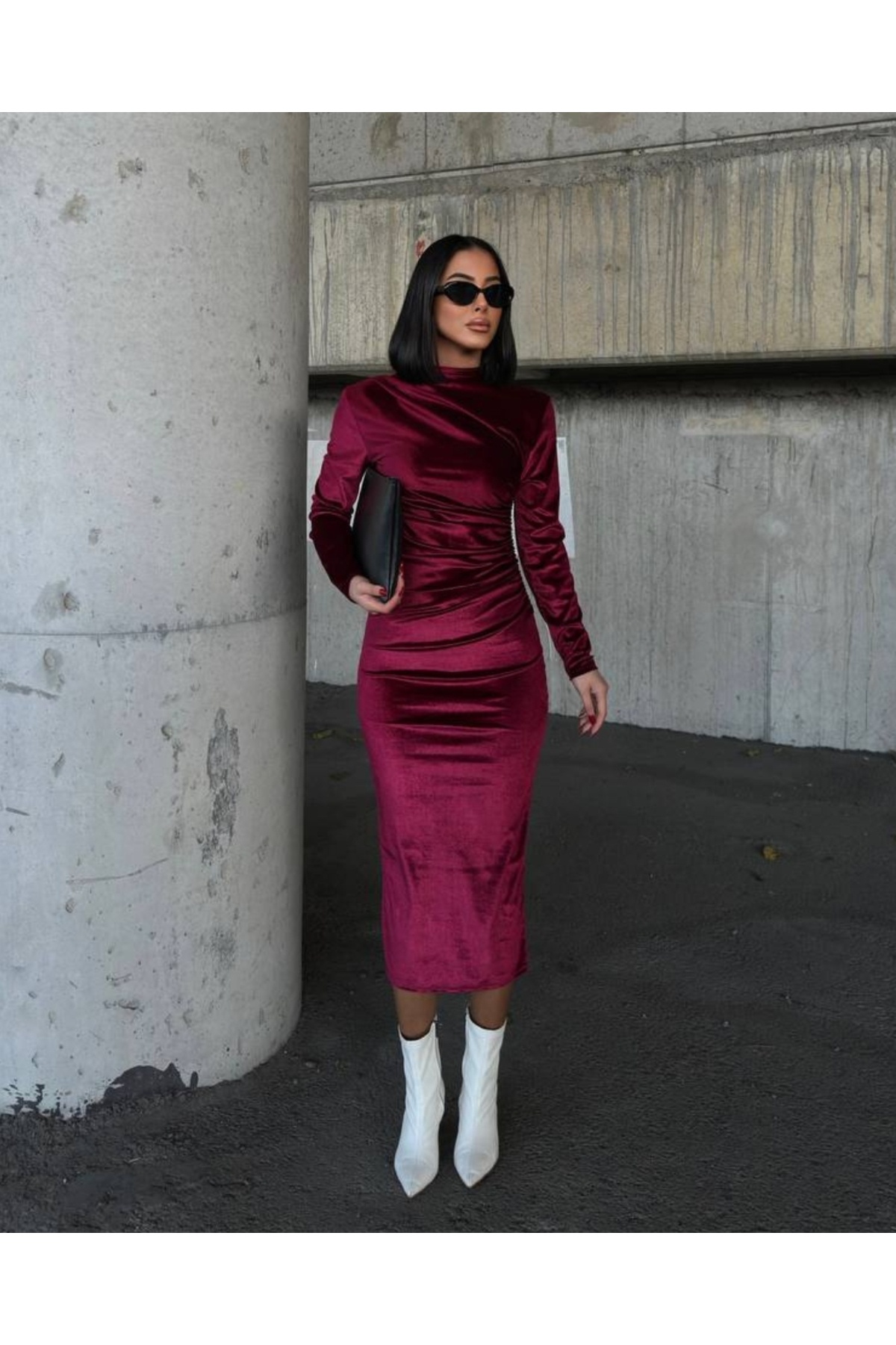 Kruvaze Bordo Kadife Kalem Elbise Kruvaze Bordo Kadife Kalem Elbise SMSM10000000577 40