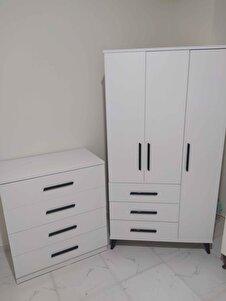 Gm 084 Almina 4 Çekmeceli Siyah Kulplu Beyaz Şifonyer Gm 084 Almina 4 Çekmeceli Siyah Kulplu Beyaz Şifonyer GM 084 تک سایز