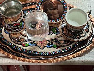 2 Kişilik Işlemeli Bakır Fincan Seti, Takımı ( Tepsi Lokumluk 2 Adet Fincan 2 Kişilik Cezve ) 2 Kişilik Işlemeli Bakır Fincan Seti, Takımı ( Tepsi Lokumluk 2 Adet Fincan 2 Kişilik Cezve ) EVACSV1-NO1 تک سایز