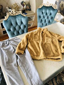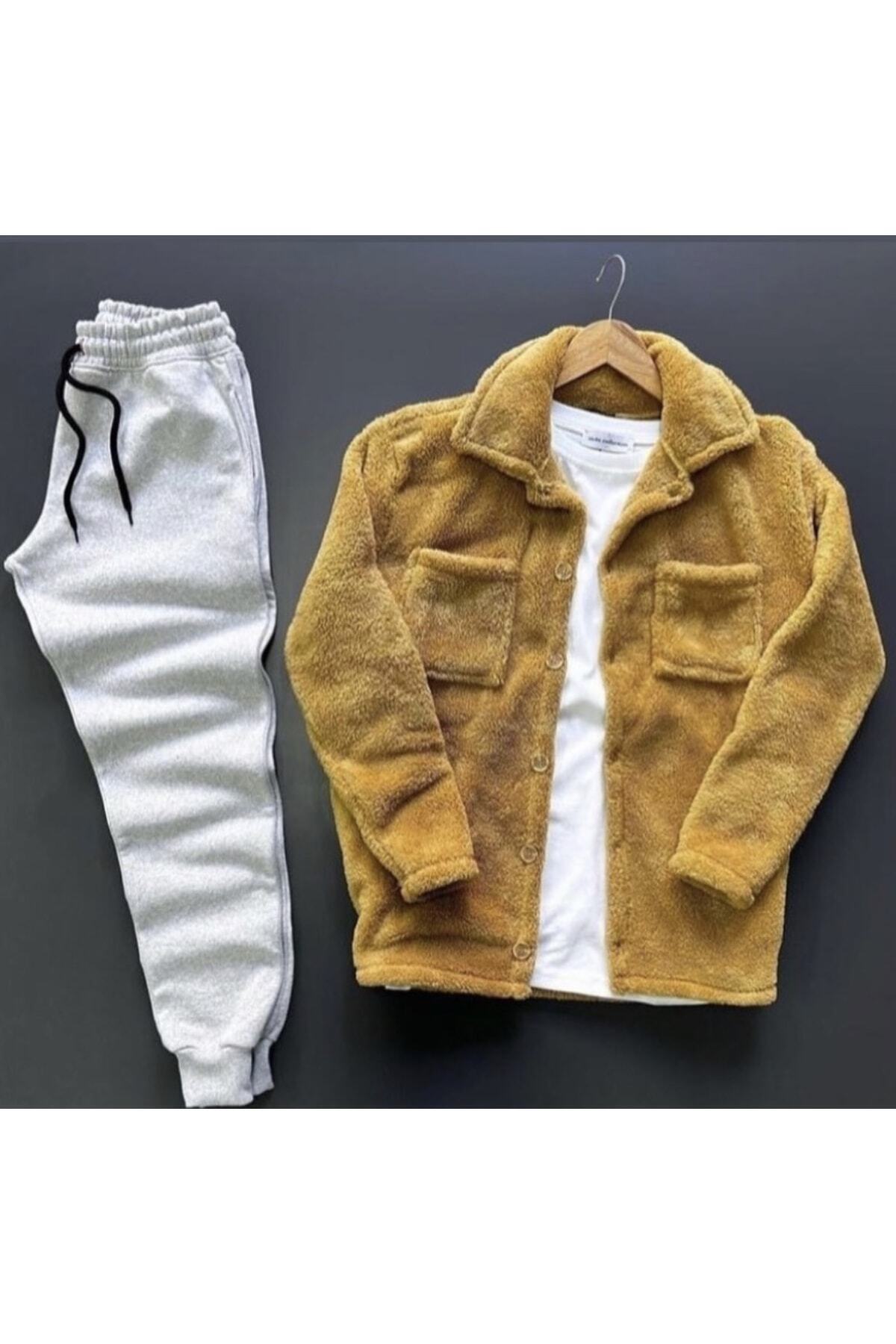 Erkek Cep Detaylı Pelüş Gömlek Ve Eşofman Kombini Erkek Cep Detaylı Pelüş Gömlek Ve Eşofman Kombini kmbn45 XL