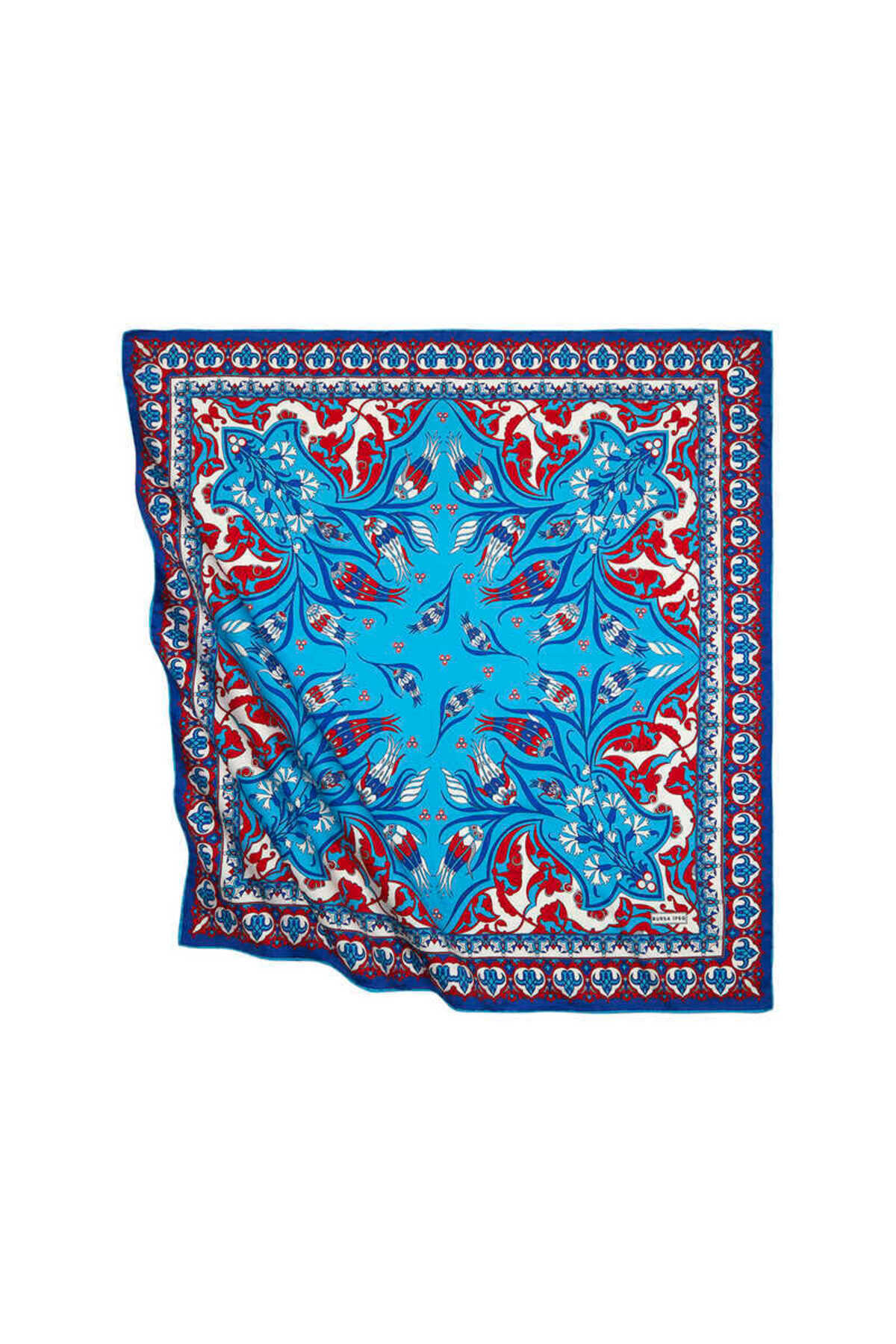 Lacivert Turkuaz Türk Motifli Çini Desen İpeksi Eşarp Lacivert Turkuaz Türk Motifli Çini Desen İpeksi Eşarp 8683433076112 90 x 90