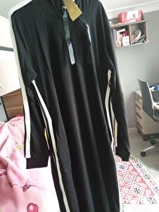 Günlük Uzun Spor Şeritli Elbise - Siyah Günlük Uzun Spor Şeritli Elbise - Siyah 529 2XL