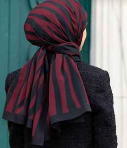 Kadın Lüks Medine Ipeği Şal Siyah - Kırmızı Kadın Lüks Medine Ipeği Şal Siyah - Kırmızı 11046A 75 x 190