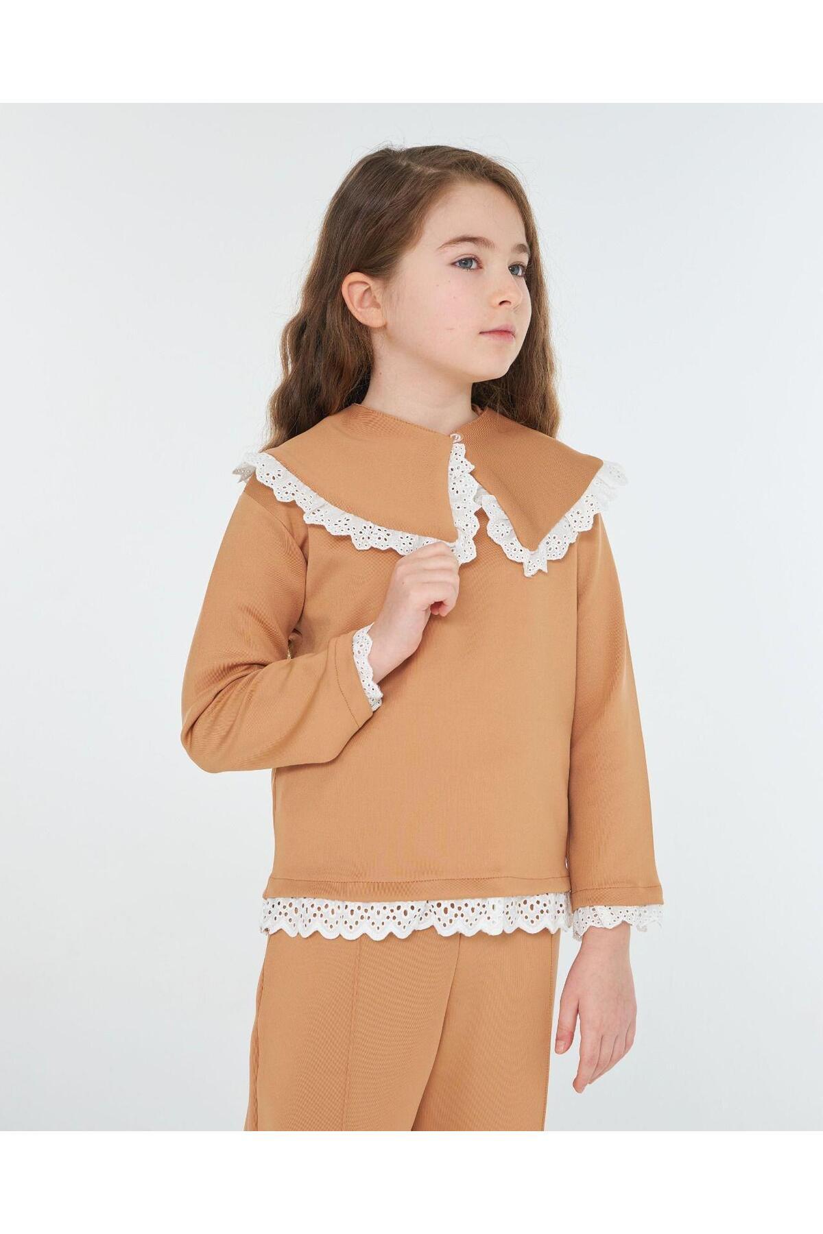 Kız Çocuk Seyyar Yaka Bluz Brode Detaylı 2'li Takım Kız Çocuk Seyyar Yaka Bluz Brode Detaylı 2'li Takım HA-130 12 Yaş