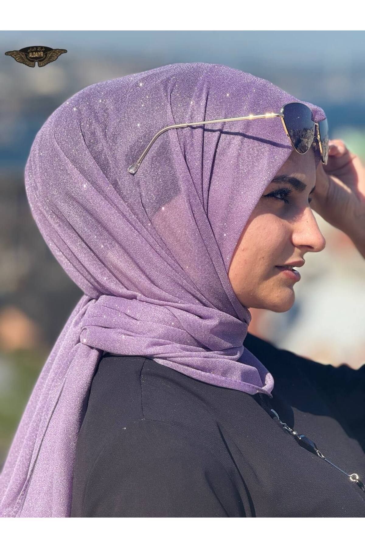 Simli Lila Abiye Şal Simli Lila Abiye Şal MMTKS740-01a 75 x 180