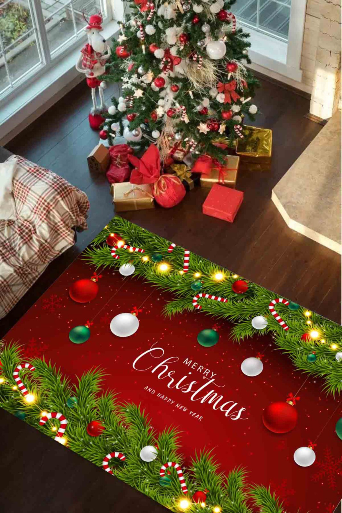 Çam Ağacı Desenli Yılbaşı Temalı Dijital Baskı Yıkanabilir Kaymaz Taban Salon Halısı Çam Ağacı Desenli Yılbaşı Temalı Dijital Baskı Yıkanabilir Kaymaz Taban Salon Halısı CHRST1 160 x 230