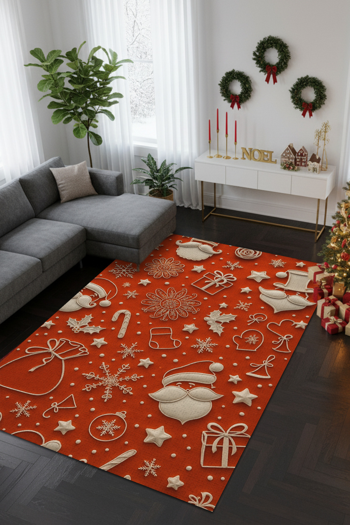 Kar Tanesi Desenli Yılbaşı Christmas Yıkanabilir Kaymaz Taban Leke Tutmaz Salon Halısı Ve Yolluk Kar Tanesi Desenli Yılbaşı Christmas Yıkanabilir Kaymaz Taban Leke Tutmaz Salon Halısı Ve Yolluk CHRST1 160 x 230