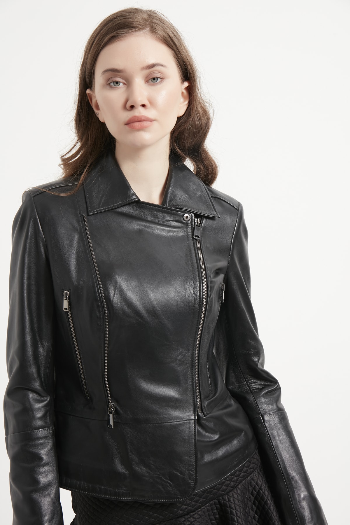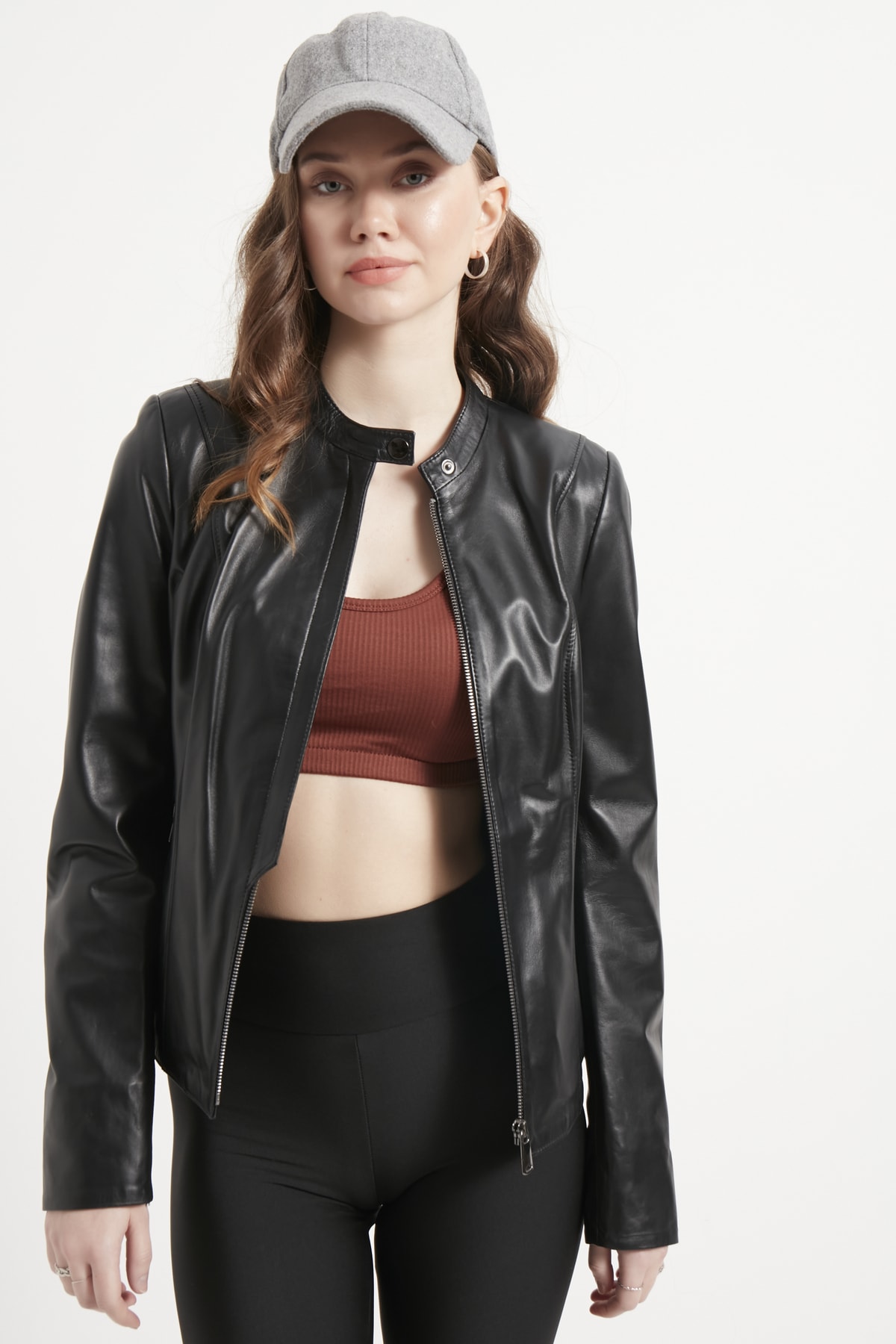 Kadın Siyah Hakiki Jumbo Deri Ceket Kadın Siyah Hakiki Jumbo Deri Ceket ZR9689687 6XL