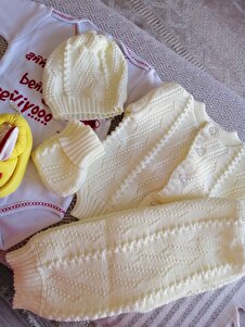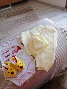 Krem 4 Parça Triko Bebek Takımı Krem 4 Parça Triko Bebek Takımı 1459 0-6 Ay