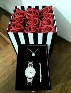 Kırmızı Yapay Güllü Kutuda Tektaş Kolye Bileklik Saat Set - Ps262900tr Kırmızı Yapay Güllü Kutuda Tektaş Kolye Bileklik Saat Set - Ps262900tr PS262900TR تک سایز