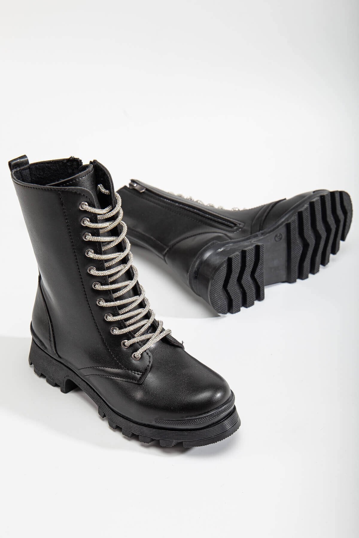 Kaydırmaz Taban Bağcık Taşlı Kadın Bot SİYAH CİLT Kaydırmaz Taban Bağcık Taşlı Kadın Bot SİYAH CİLT Z00010730076 40
